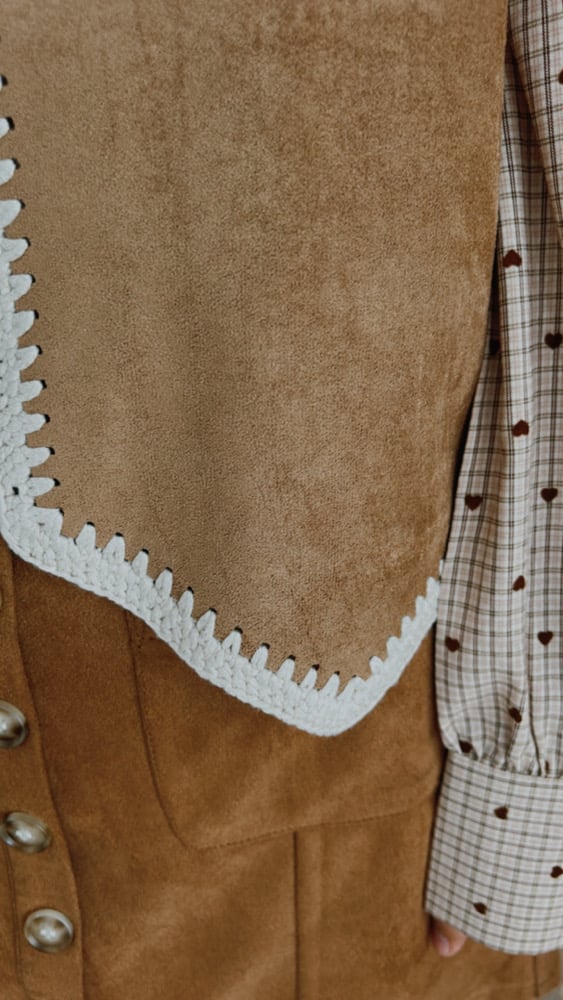 Gilet sans manche effet daim. Surpiqûre écru tout autour